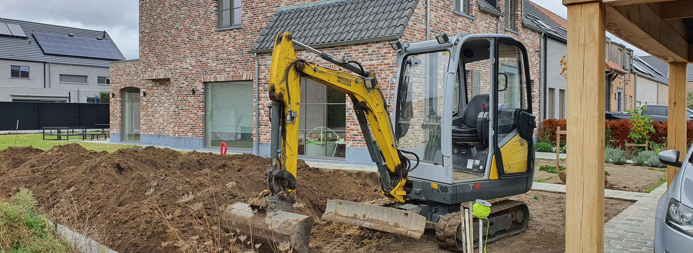 Dankzij ons groot machinepark voeren we alle grondwerken zelf uit. De grondvoorbereiding is de basis van een goed groeiende beplanting. We werken enkel met kwalitatieve teelaarde.